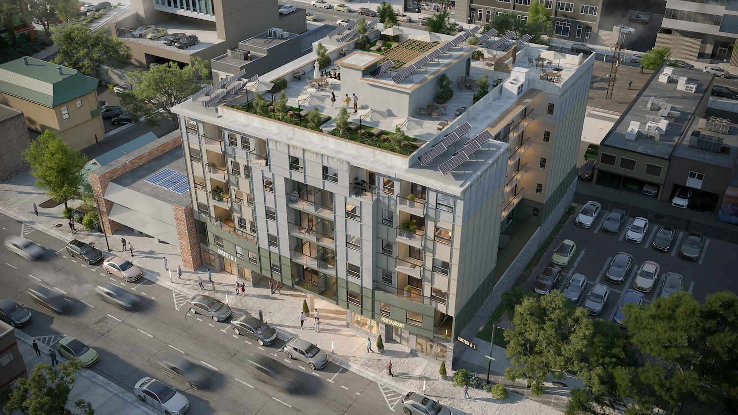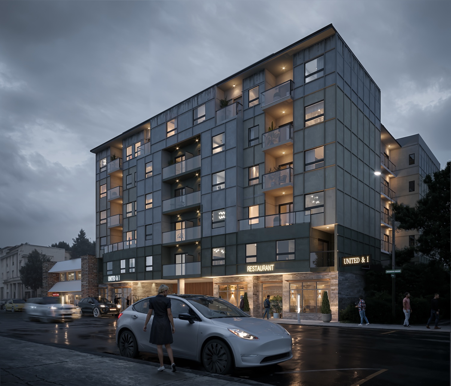 It is a 6 storey building in downtown Kamloops. Heated underground parking, EV charging, 2 commercial units on the main and 76 residential units ranging from micro suites to 3 bedrooms, large rooftop ammenities space